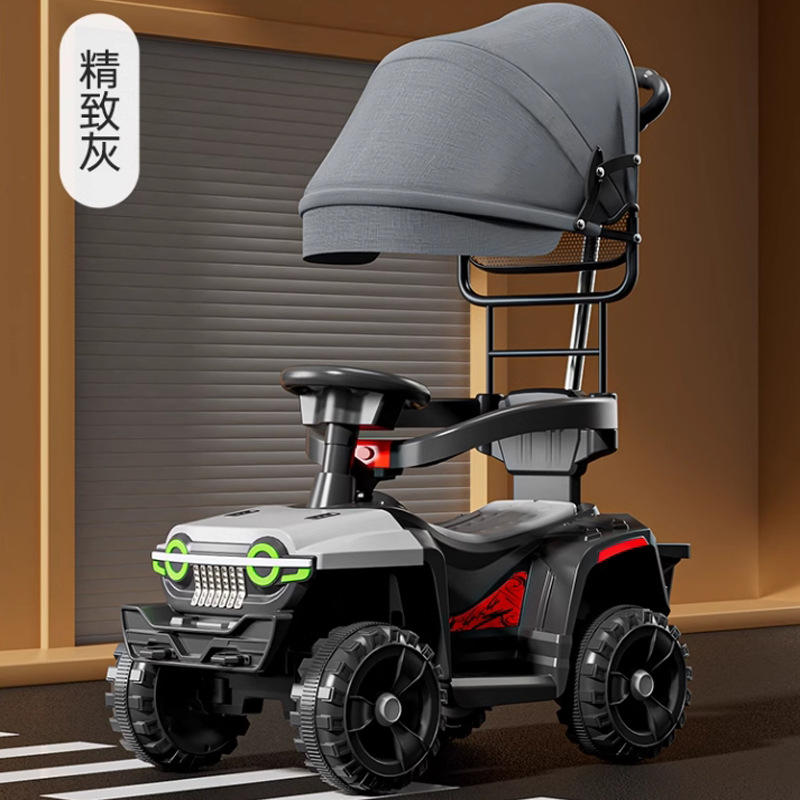 Coche eléctrico para niños de 4 ruedas con capota para niños de 2 a 4 años, vehículo de juguete unisex todoterreno