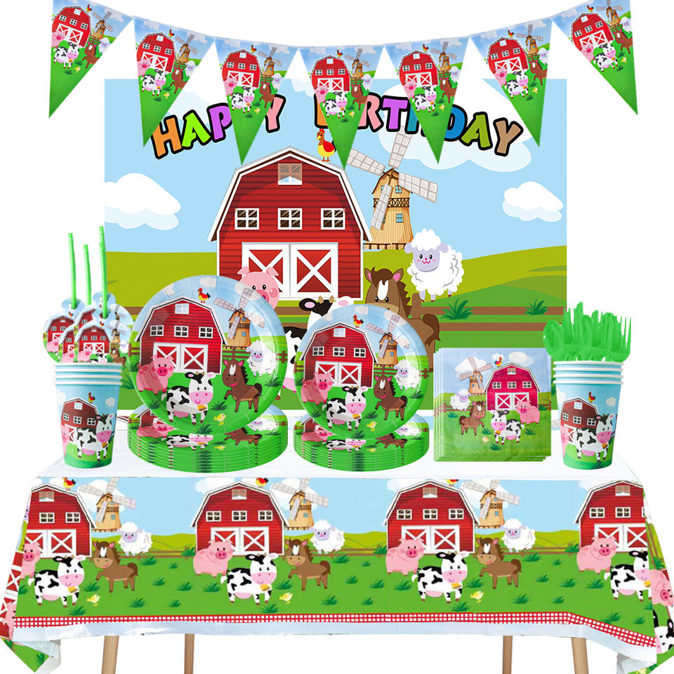Juego de Vajilla Infantil con Diseño de Animales de Granja, Incluye Servilletas, Platos de Papel, Vasos, Decoraciones para Fiestas de Cumpleaños, Navidad y San Valentín