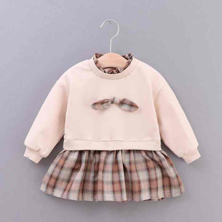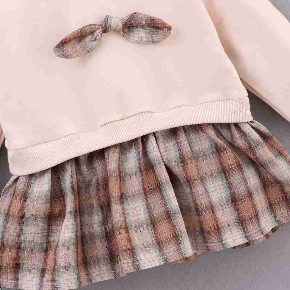 Name:Custom Color Bow Decoration Hoodies And Clothes Girl Grid Dress Suits