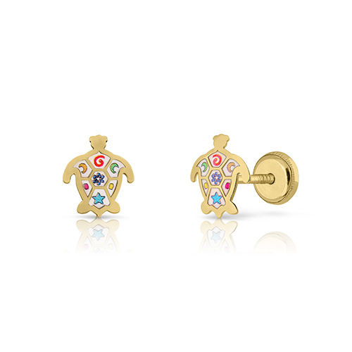 Pendientes de oro para niños con esmalte Diseño de tortuga Joyas para niños