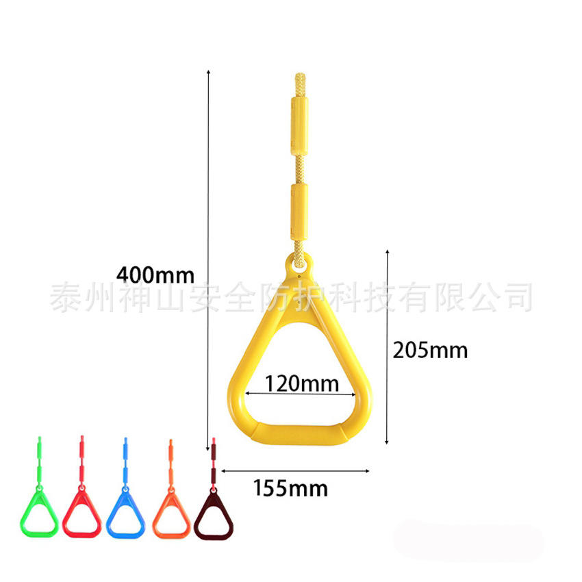 Anillos colgantes para niños con cuerdas cortas, forma triangular, cuerda de plástico y poliéster, capacidad de carga de 150 kg para parques infantiles
