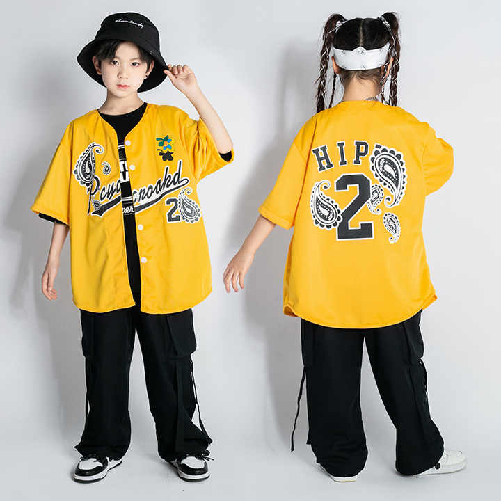 Traje de moda Hop para niños Vestido de baile de jazz Hop de manga corta para niños Traje de actuación para niñas
