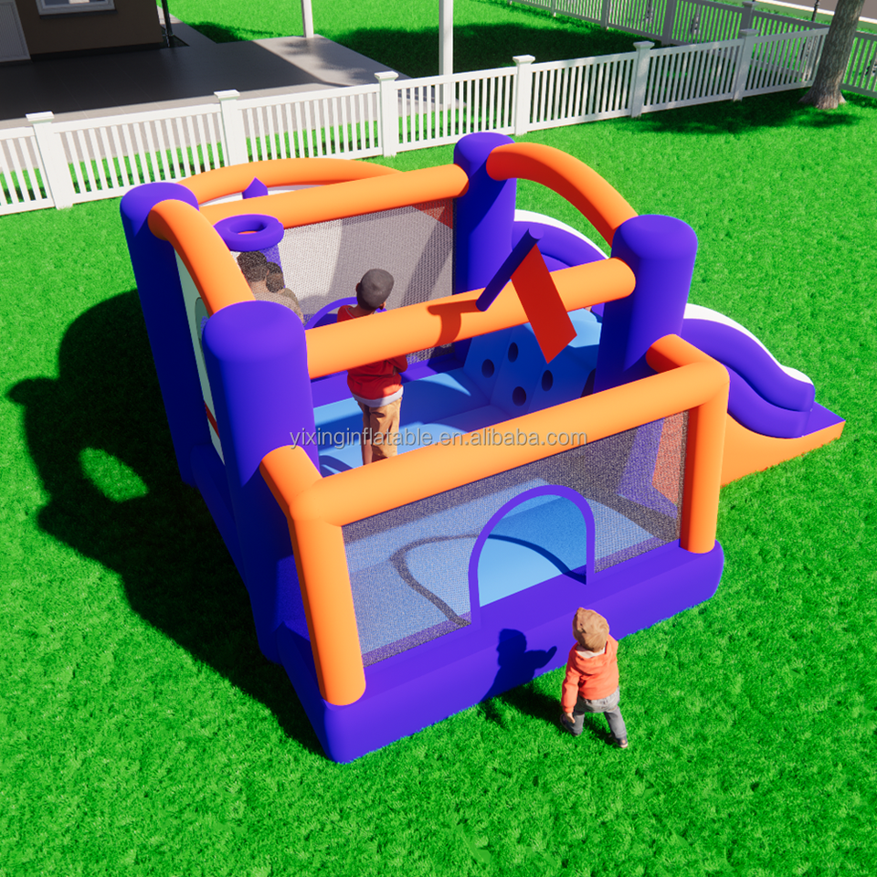 Castillo inflable para niños con tema náutico, con tobogán largo, trampolín y pozo de bolas