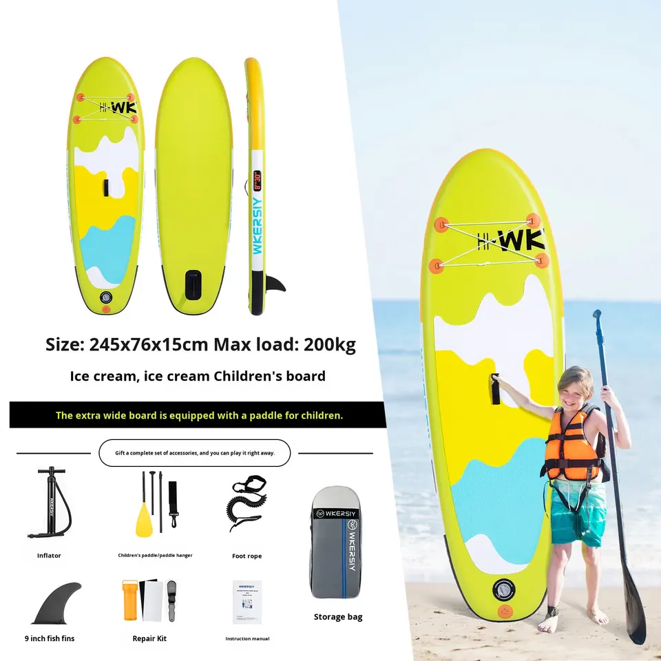 Detalles del Accesorios de empaquetado:bomba, remos, cuerda para los pies, aleta de 9 pulgadas, kit de reparación
