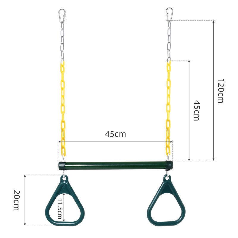 Anillas de columpio para niños, 45 cm x 120 cm, hierro y plástico, mango triangular, para equipos de juegos de jardín de infantes