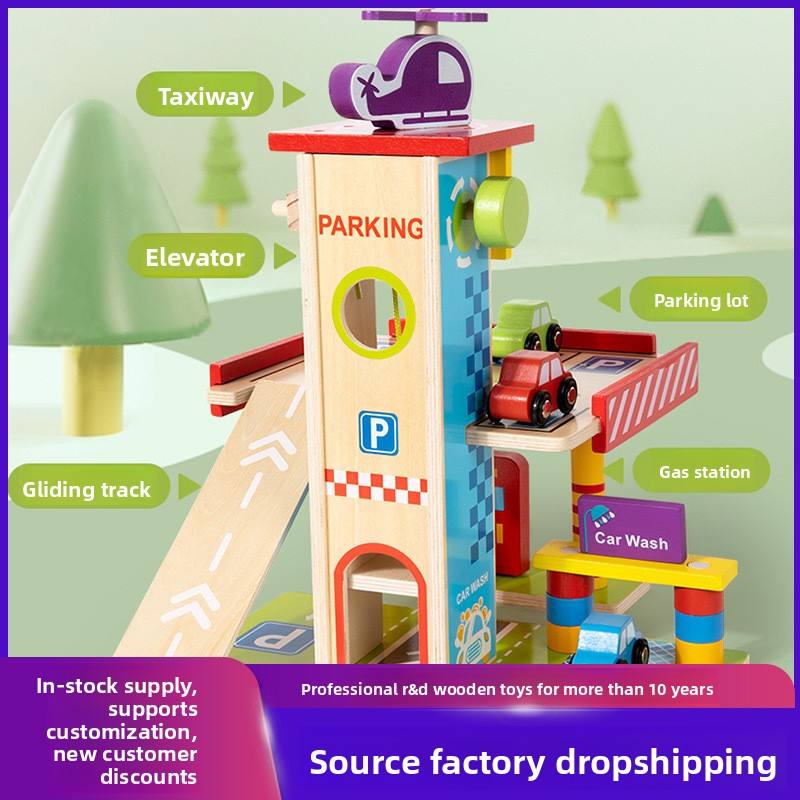 Simulación de juego de simulación para niños, juguete educativo interactivo para padres e hijos, juego de rol, juguete de estacionamiento de madera de tres pisos