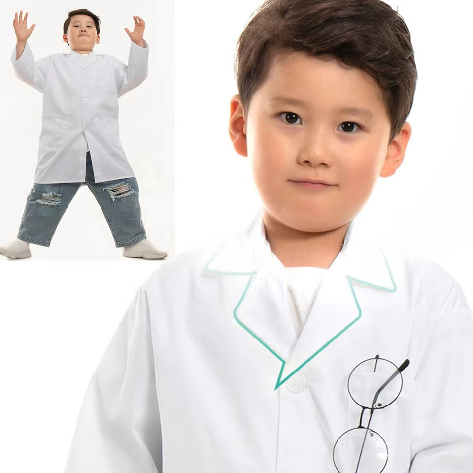 Escuela laboratorio científico juego de rol blanco laboratorio abrigos para niños