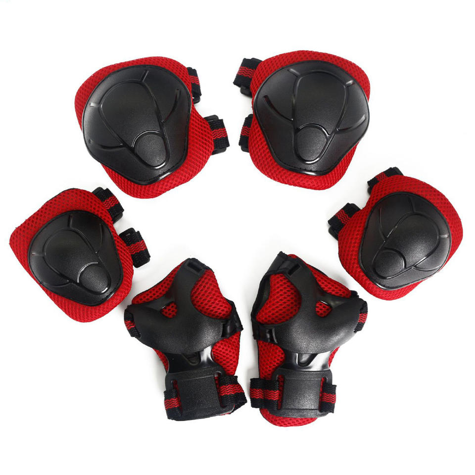 Conjunto de equipo de protección para niños, almohadillas para rodillas, codos y muñecas, color rojo, transpirable, para monopatín, patinete, bicicleta, bicicleta de equilibrio, 6 piezas