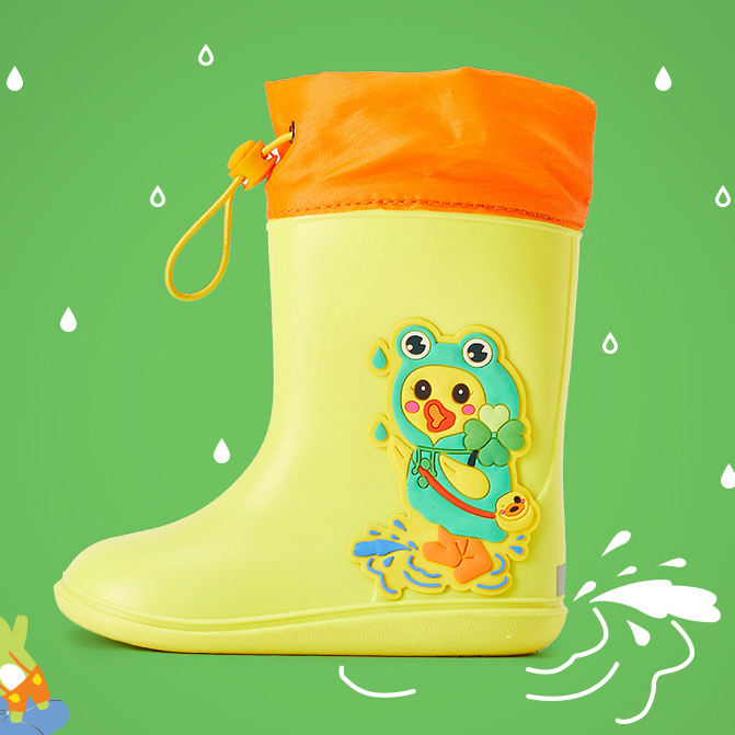 Botas de lluvia para niños con cordón, ligeras, duraderas, impermeables y antideslizantes, bonitas Botas de lluvia de plástico de PVC para exteriores con dibujos animados
