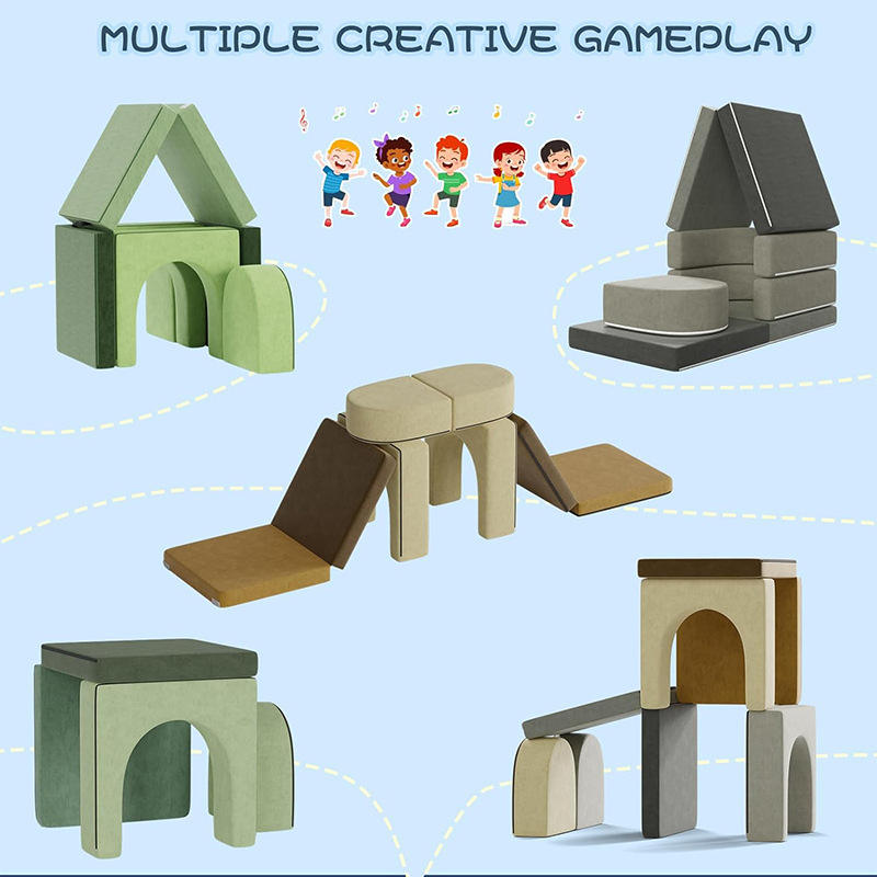 Conjunto de Sofás Suaves para Niños, Muebles Modulares de 8 Piezas, Equipo de Juego Educativo para Niños, Entrenamiento de Integración Sensorial