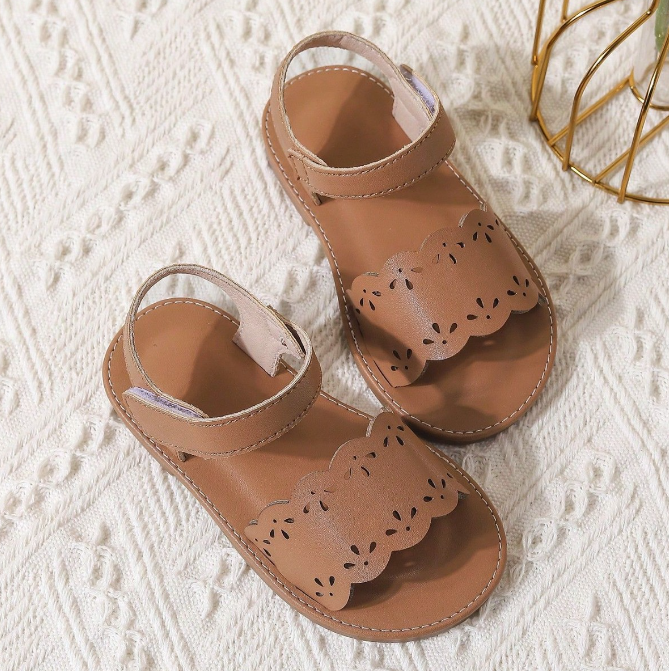 Sandalias de suela blanda con punta abierta para niños; Sandalias de princesa huecas, modernas y retro para niñas