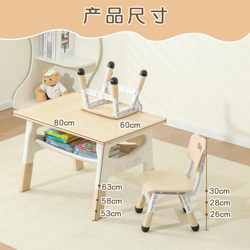 Juego de Mesa y Silla para Niños, Altura Ajustable, Diseño Moderno de Plástico, para Guardería, Estudio, Dibujo, Almacenamiento