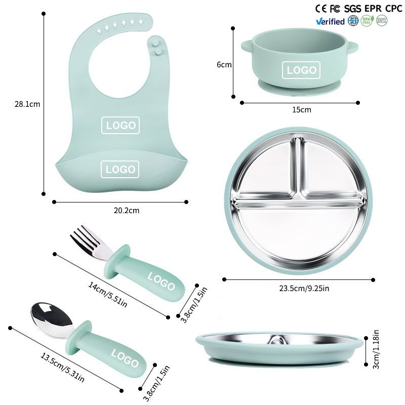 Juego de Vajilla Infantil de Acero Inoxidable 304 y Silicona Antideslizante, Plato con Ventosa para Bebés