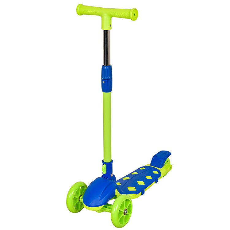 Patinete de tres ruedas para niños, plegable, ajustable en altura, con luces, para niños de 3 a 6 años, azul y verde fluorescente