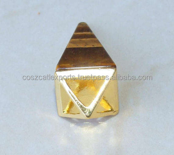 Colgante de Pirámides de ojo de tigre para niños, joyería de acero inoxidable con ajuste de bisel