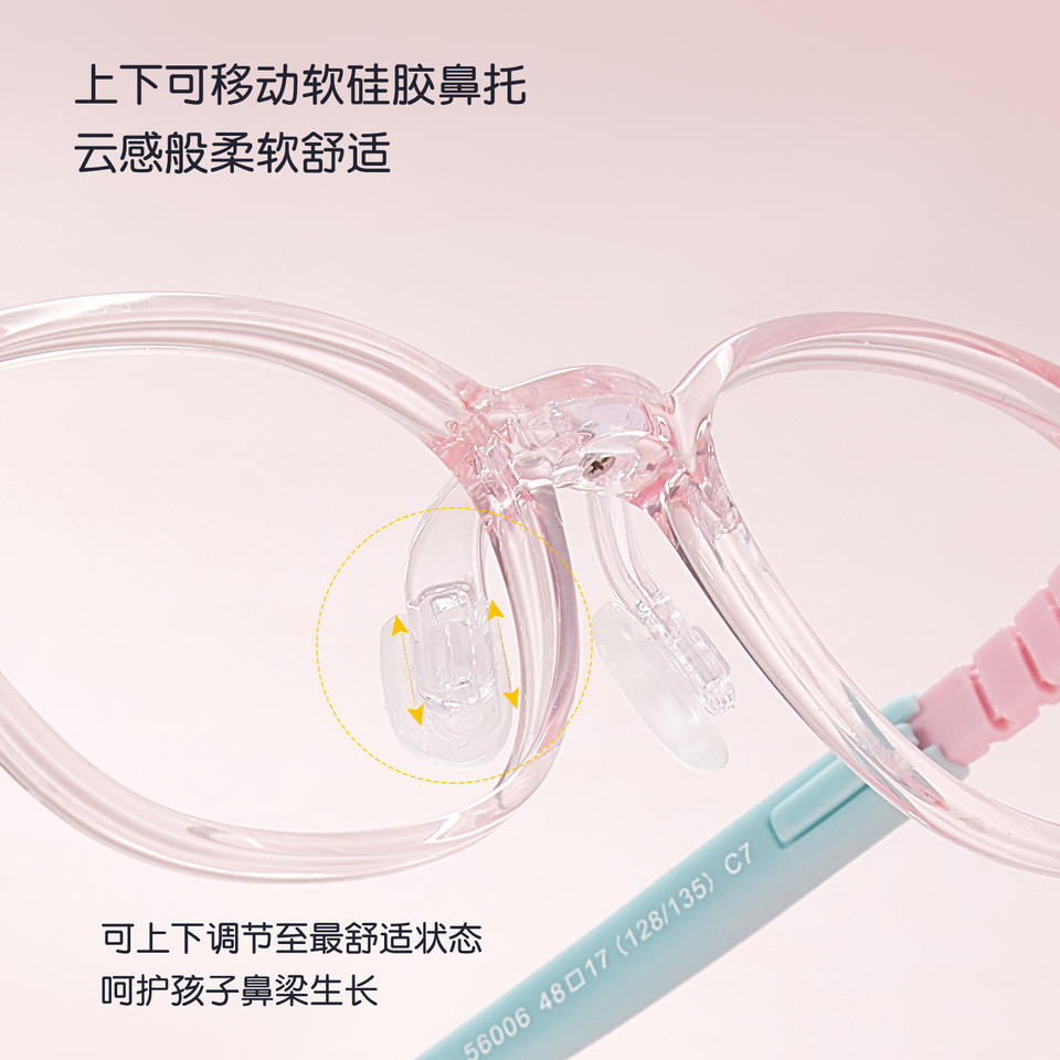 Monturas de gafas Tr90 con montura completa para niños, 56006, almohadillas nasales ajustables y patillas para niños con lentes de resina