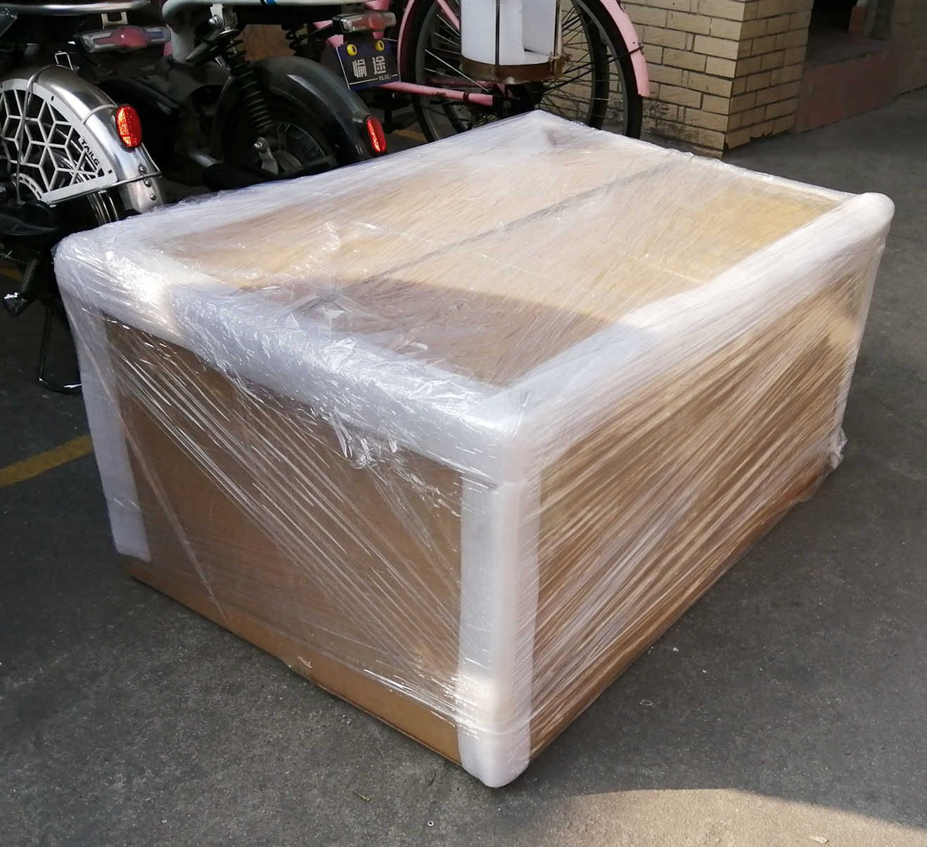 3. Thirdly, wrap the machine in plastic film (to prevent ventilation);
