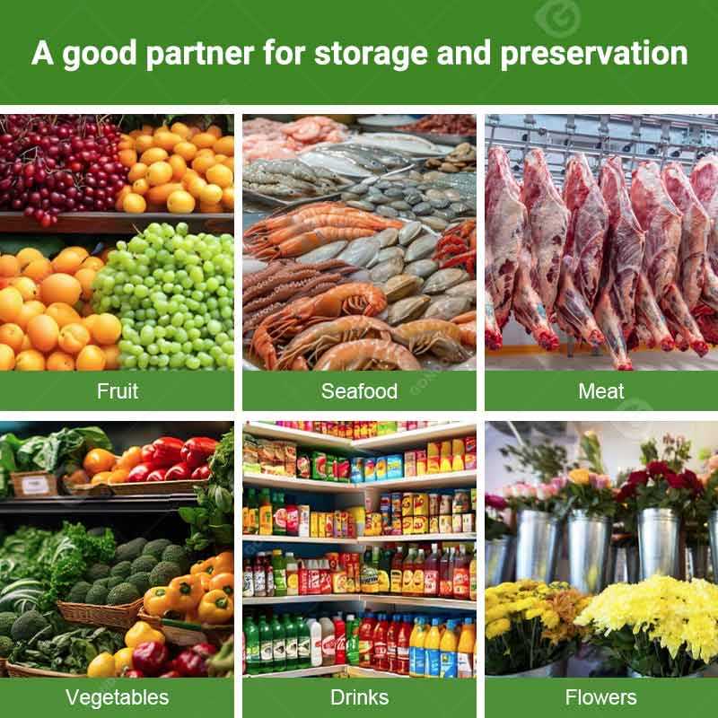 aplicación:Almacena alimentos, flores, mariscos, etc.