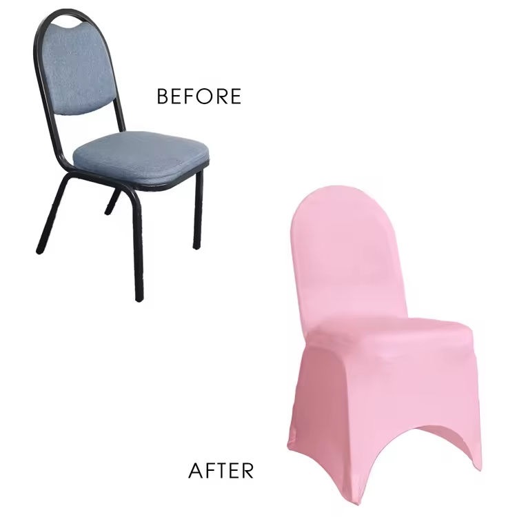 Funda de Silla para Banquete de Spandex Personalizada de China, Elástica, Reutilizable, Lavable a Máquina, de Estilo Moderno, en Colores Gris y Rosa Intenso