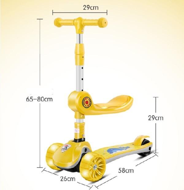 Patinetes de rueda de parpadeo ajustables para niños con asiento, 3 ruedas, 2 en 1, scooter plegable, gran oferta, personalizado, china