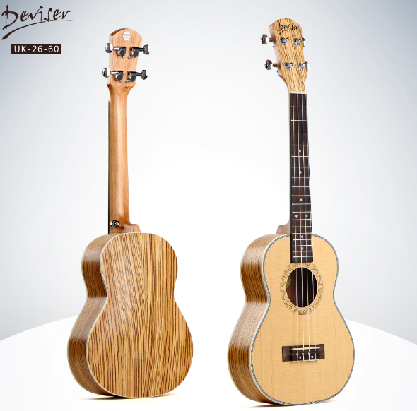 Ukelele de Madera de Alta Calidad de 24 Pulgadas con Tapa de Abeto y Madera de Zabrawood, Marca China Deviser, en Oferta para Tiendas de Música