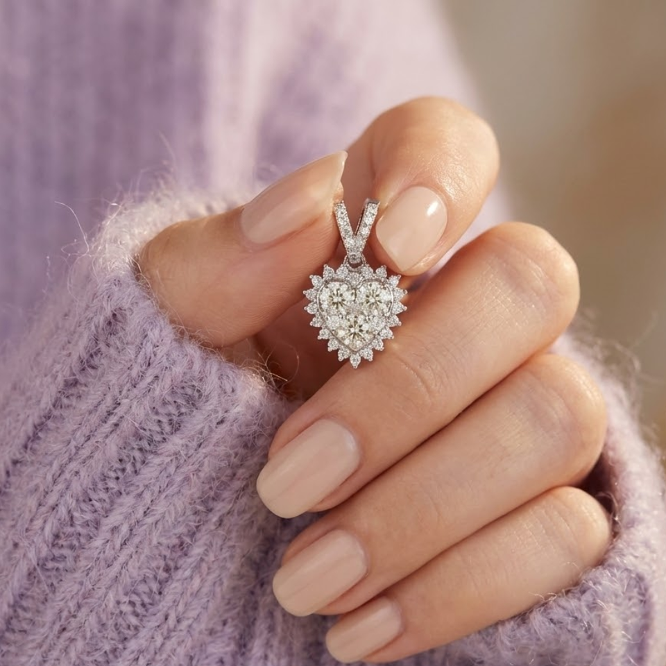 Fábrica de China Joyería fina Personalizar Alta calidad 18K Oro blanco sólido Diamante real Corazón Collar Colgantes para regalo Mujeres