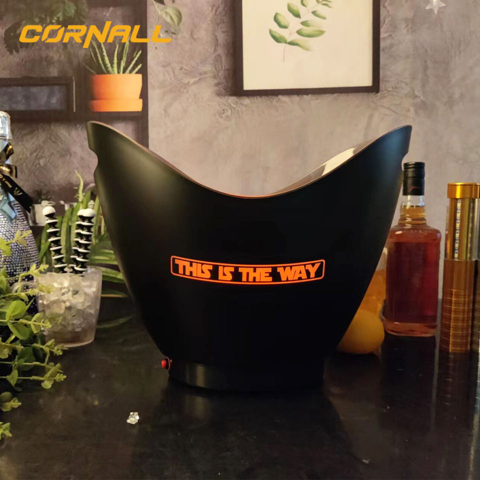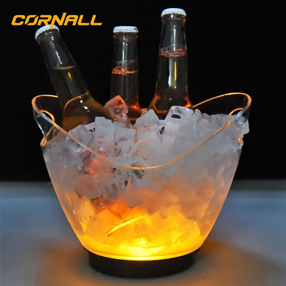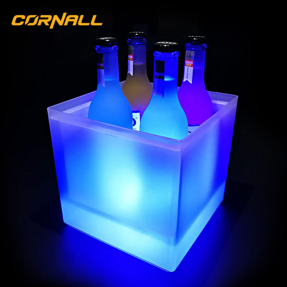 Cubo de Hielo LED de Fábrica China, Enfriador Acrílico Cuadrado de Doble Pared para Discotecas, con Forma de Barco para Champaña y Vodka, Dorado con Iluminación
