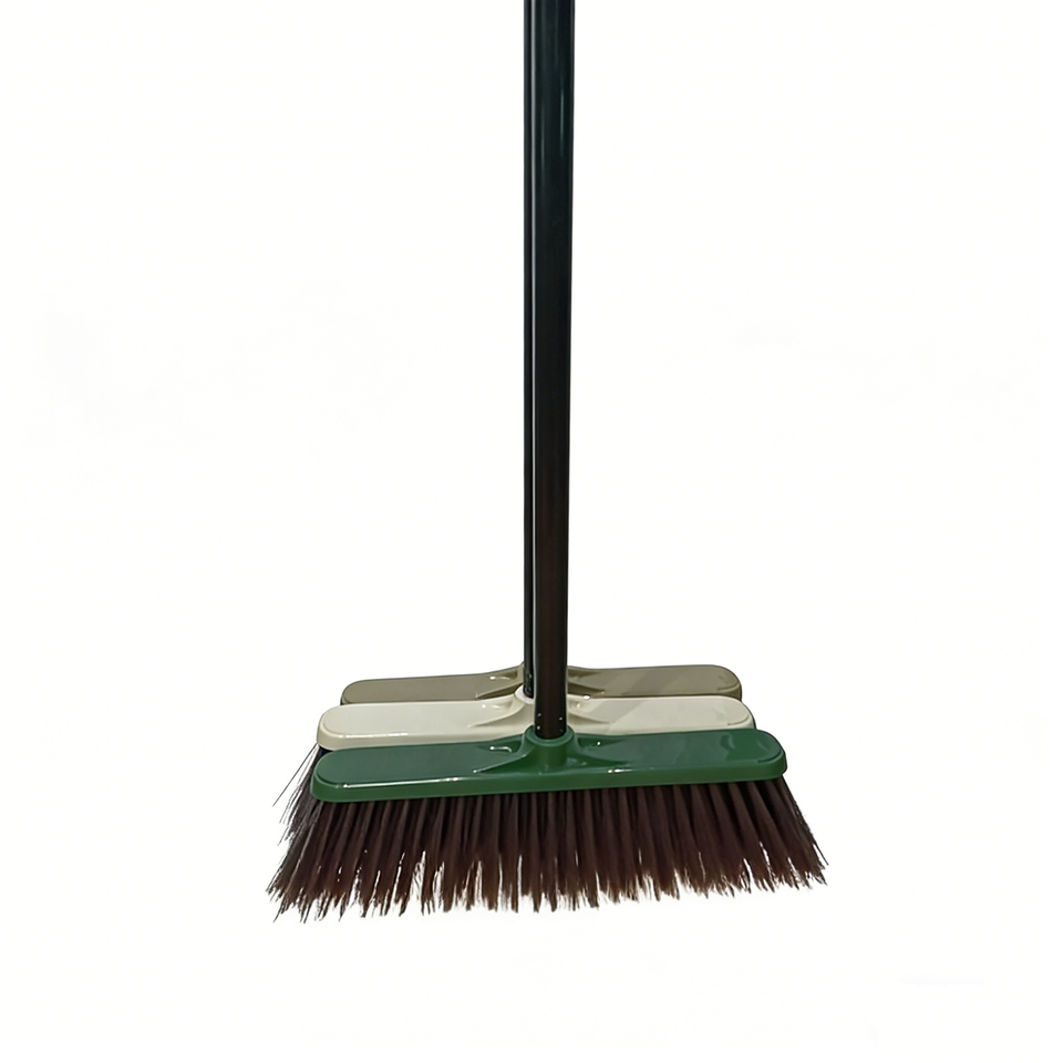 Escoba Doméstica Resistente y Ecológica de Alta Calidad de Fábrica China, Escoba con Cerdas Suaves de PET, Palo de Escoba de Plástico para Limpieza de Pisos en Interiores