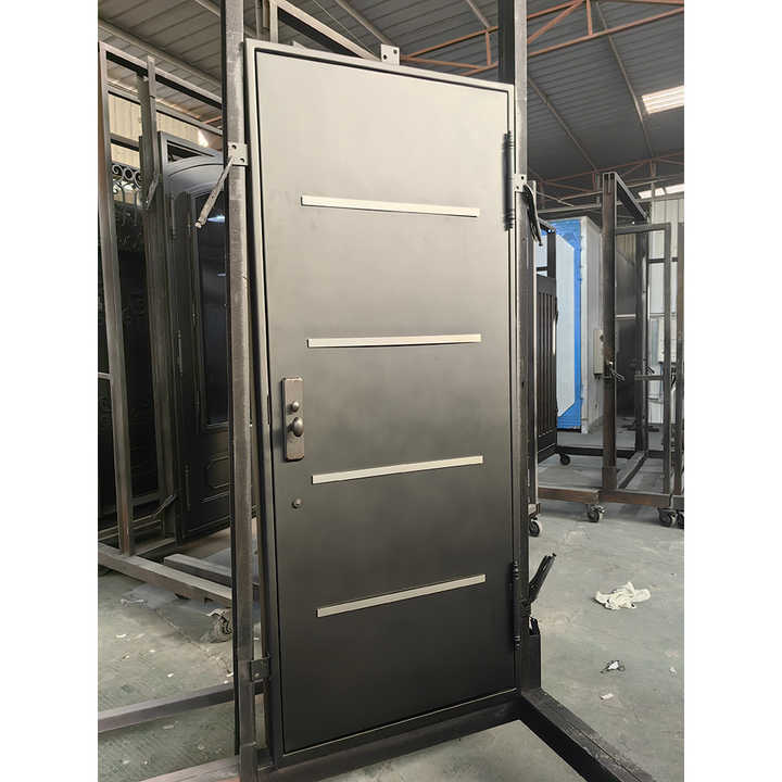 Fábrica de China, puertas de hierro forjado exteriores e interiores dobles negras cuadradas de seguridad francesa simples con diseño de vidrio