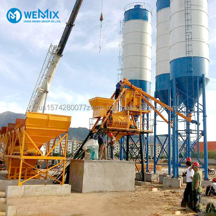 Mezclador concreto JS1000, Máquina de Batching PLD1600, Transportador de tornillo, Silo de cemento, Sistema de control centralizadoLos componentes principales.