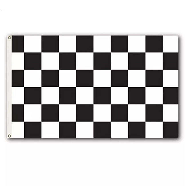 Banderas a cuadros de carreras personalizadas en blanco y negro para exteriores, fabricadas en China