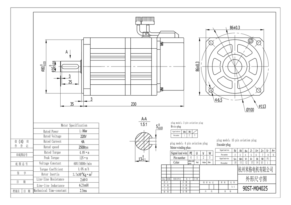 Fabricante de China 90ST-M04025 1000W Servomotor de imán de CA integrado de alto par