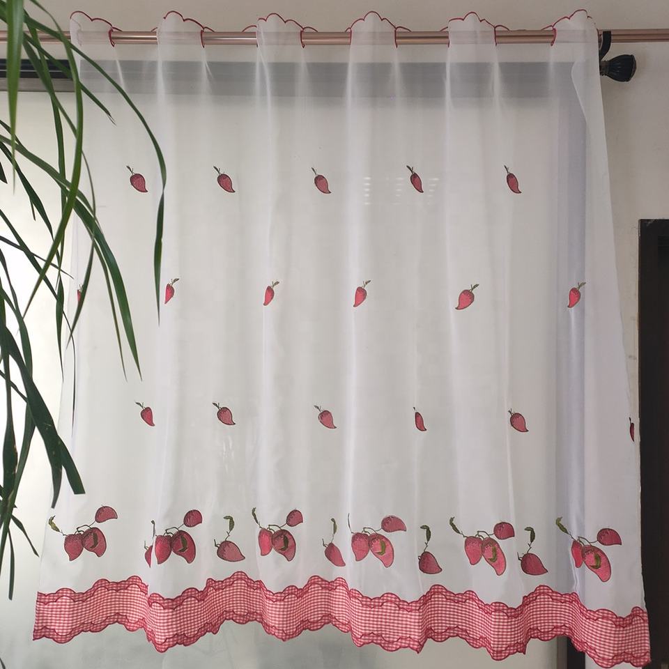 Cortina de Cocina Corta con Bordado de Frutas, Estilo Europeo, con Bolsillo para Barra, Económica y Bonita, Fabricada en China para Amazon