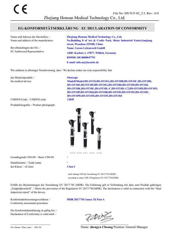 Certificado:CE/ ISO13485