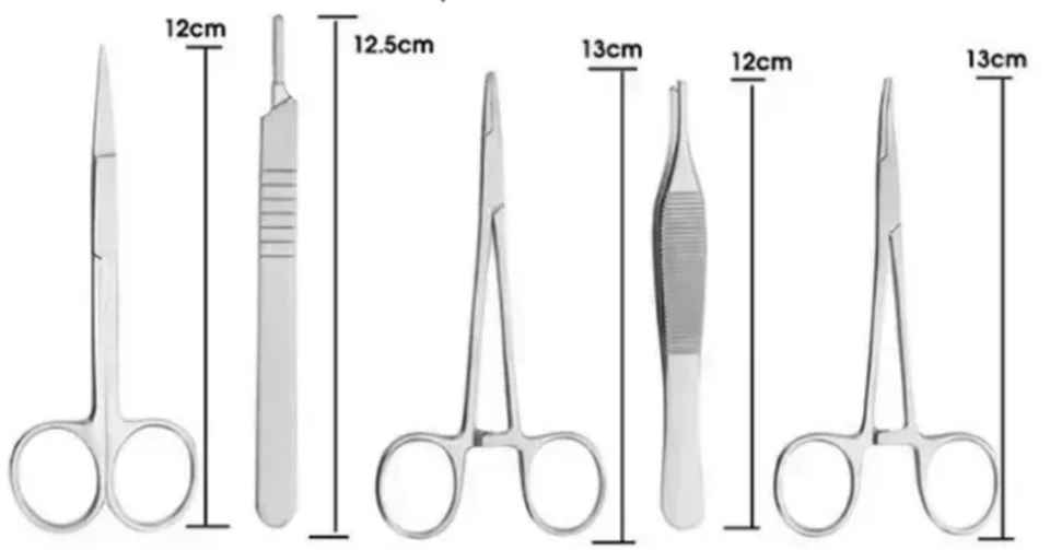 Fabricante de China, Escuela de Enfermería, estudiantes, Kit de entrenamiento de sutura quirúrgica, juego de instrumentos de disección quirúrgica para Hospital