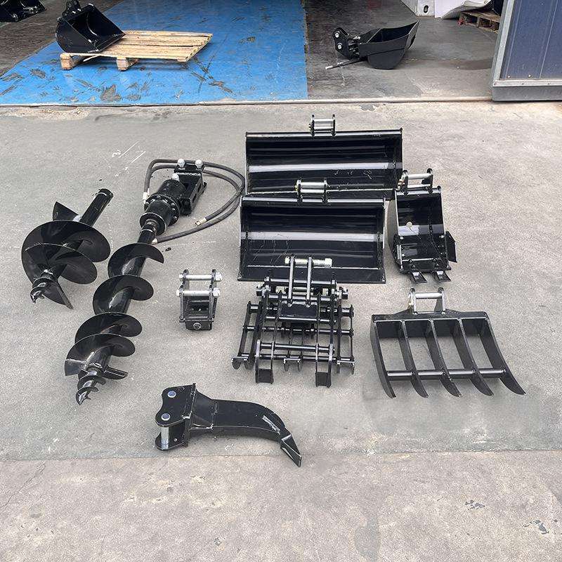Accesorios para miniexcavadoras de China: Rastrillo, desgarrador, barrena, taladro, cucharón, acoplador rápido