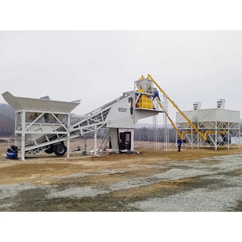 Planta Mezcladora de Cemento y Concreto Portátil Mini de 50m3/h, 30m3, 60m3, Usada, con Bomba, Componente Principal, Funciones de Mezcla en Seco y Húmedo