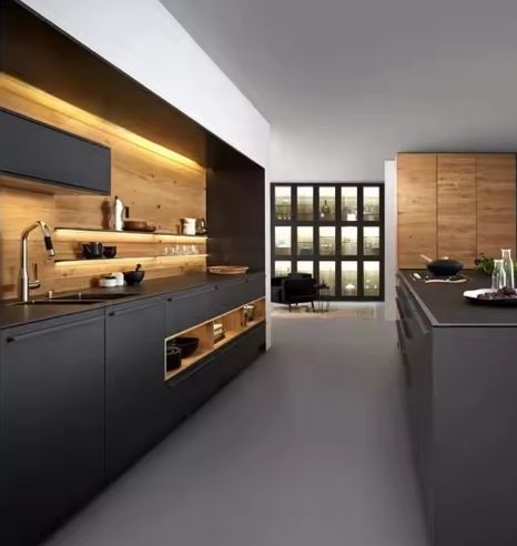 Juego de Muebles de Cocina Modulares Modernos de Madera Negra, Fabricados en China, en Venta