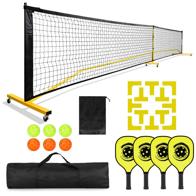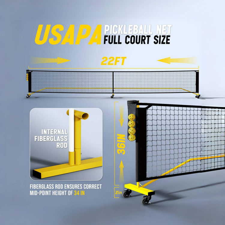 Ruedas portátiles de China, tamaño de regulación, 22 pies y media cancha, marco de Metal estable de 11 pies para patios traseros, logotipo OEM, garajes, red Pickleball