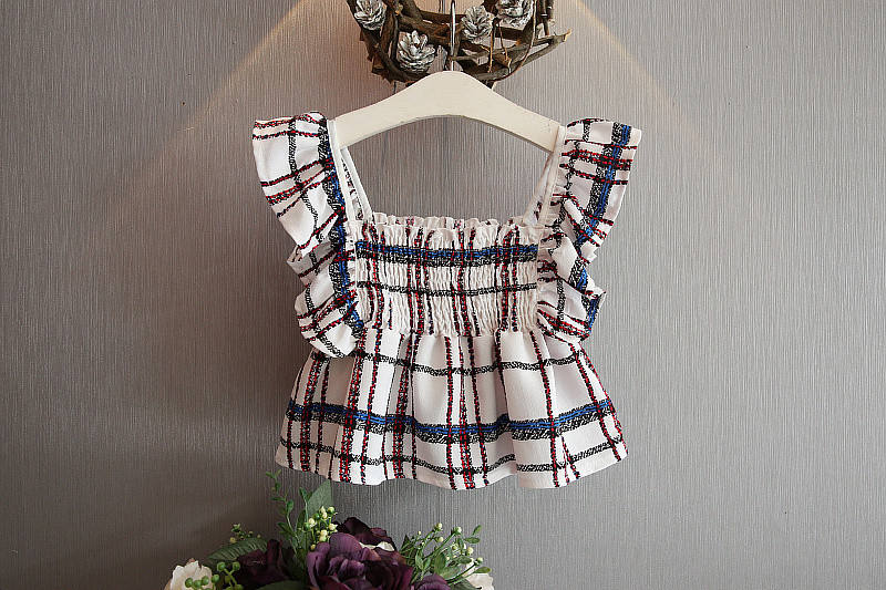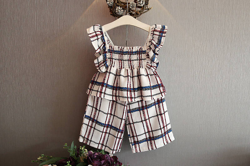 Producto de China, Camisa y Pantalones a Cuadros con Volantes, Ropa para Niñas, 2 Piezas