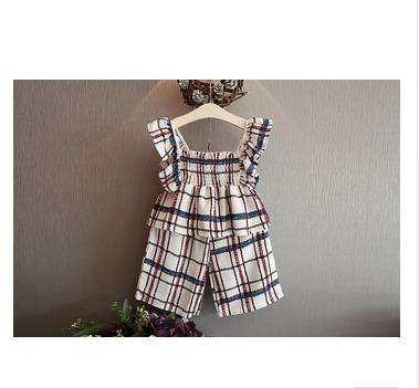 Nombre del producto:Camisa y pantalones a cuadros con volantes para niñas, ropa de 2 piezas, producto de China