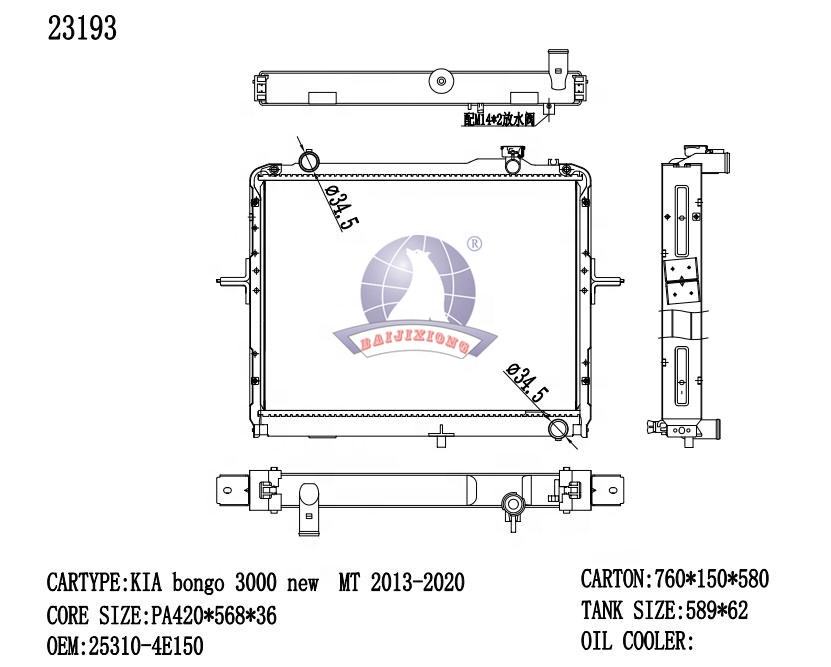 Modelo de coche:for Kia Bongo K2500 3000 MT 2013-2020