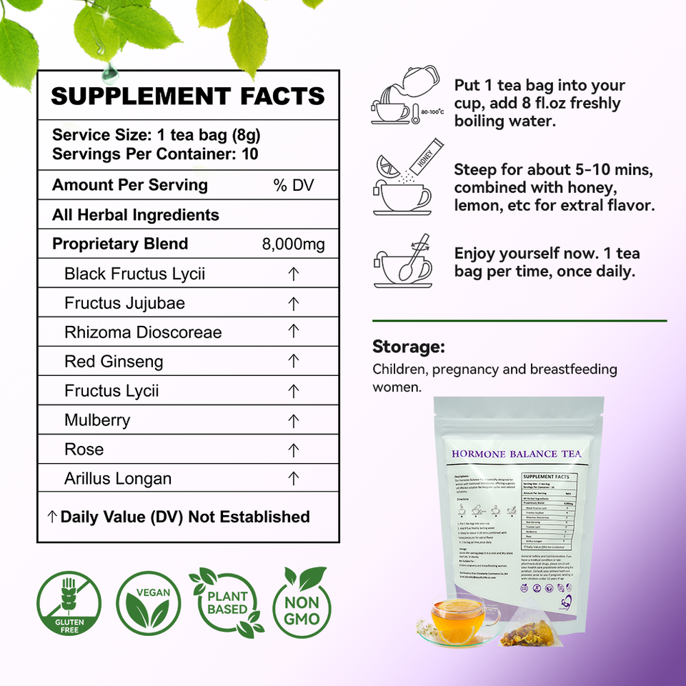 Chinaherbs Té de hierbas de hoja de frambuesa Salud DE LA MUJER Ginseng rojo con sabor a Rosa Fructus Lycii Arillus Longan Té de equilibrio hormonal