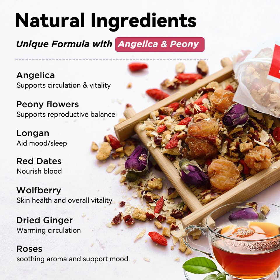 Main Ingredients:Wolfberry Red Dates Longan Pingyin Roses Dried Ginger Angelica