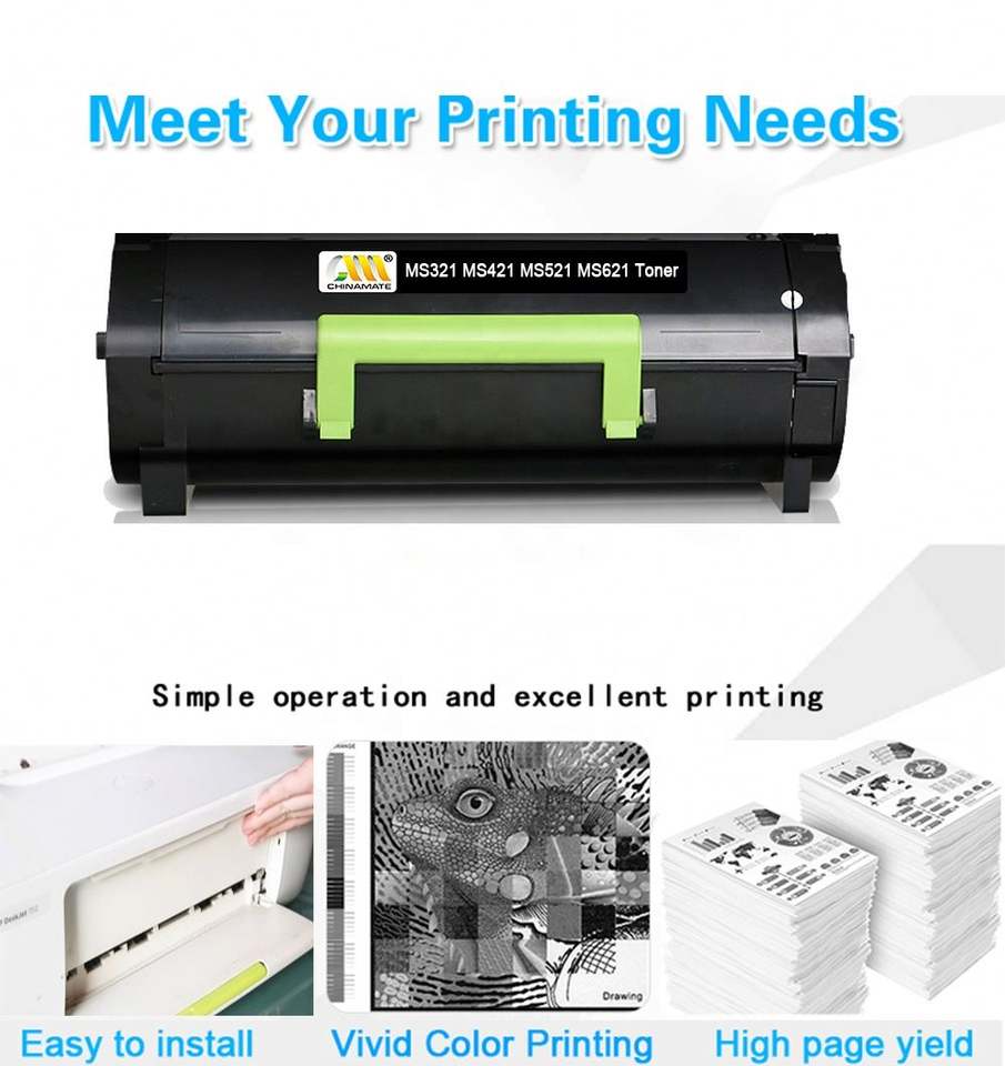 Cartucho de Tóner Compatible con Chinamate para MS321 MS421 MS521 MS621 con el Chip Inteligente Más Reciente y Polvo de Tóner Importado