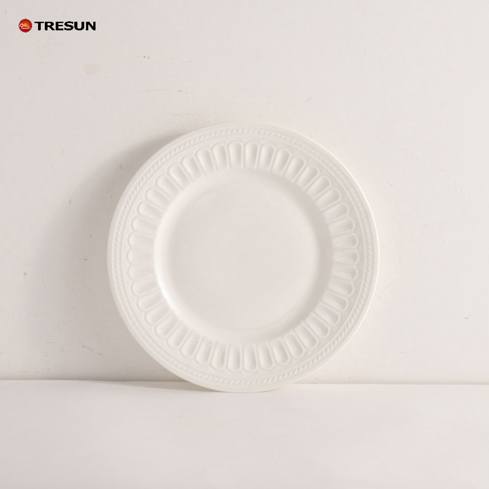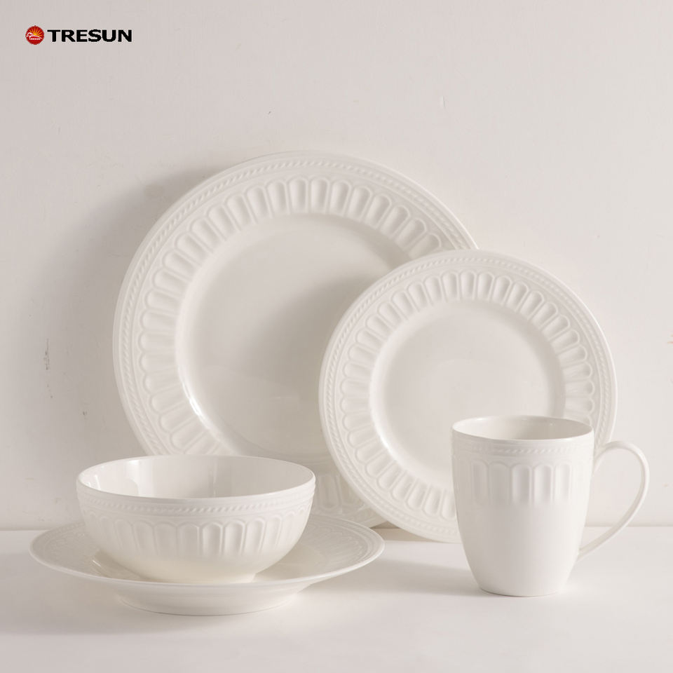 Precio DE FÁBRICA DE China, OEM personalizado barato, 18 24 32 piezas, vajilla, juego de cena de porcelana en relieve blanco para