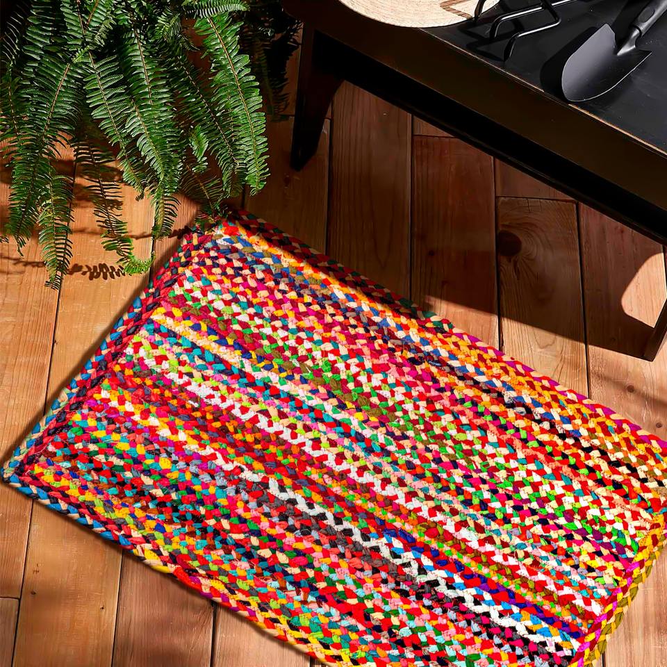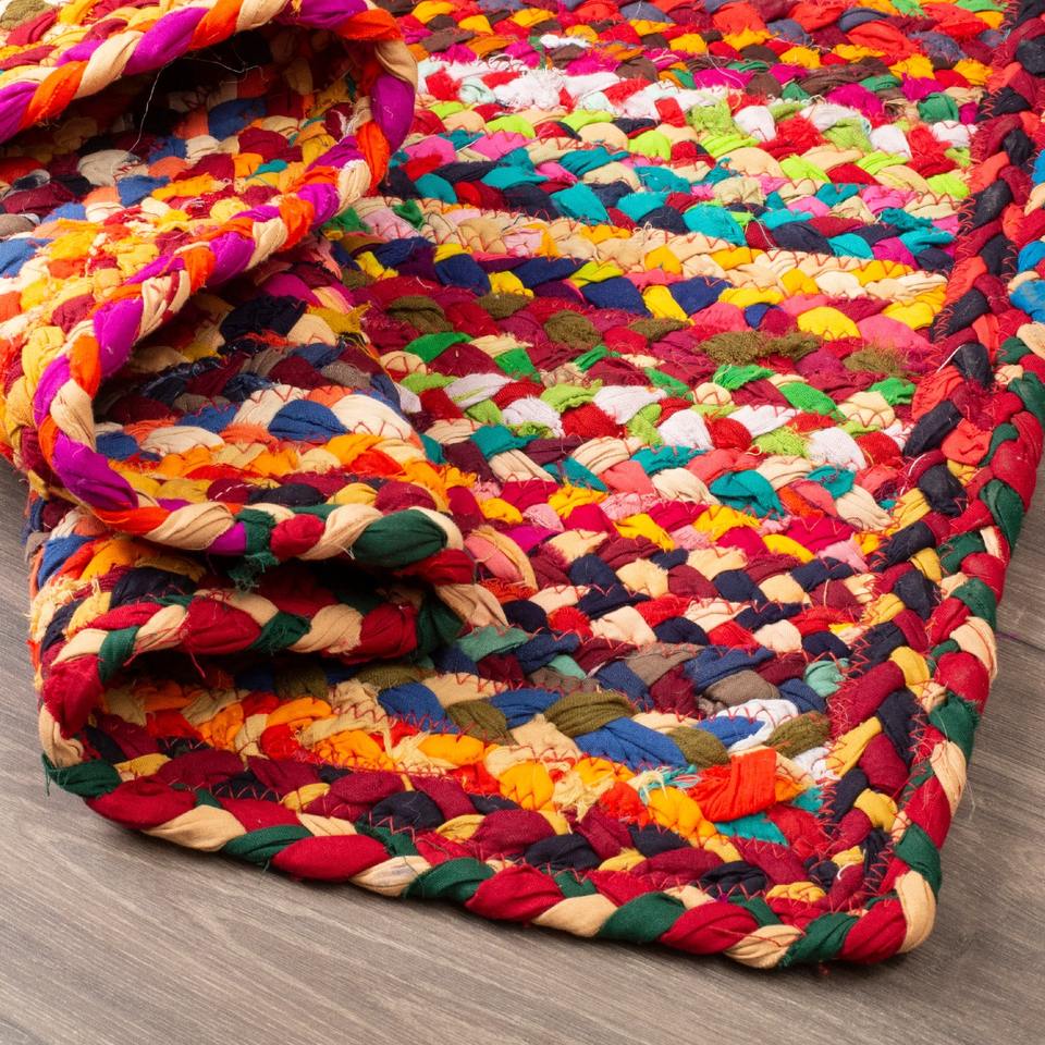 Alfombra de Tela Trenzada Chindi - Alfombra Rústica de Estilo Bohemio y Campestre, Tejida a Mano, Reversible, de Algodón Natural Reciclado - Multicolor