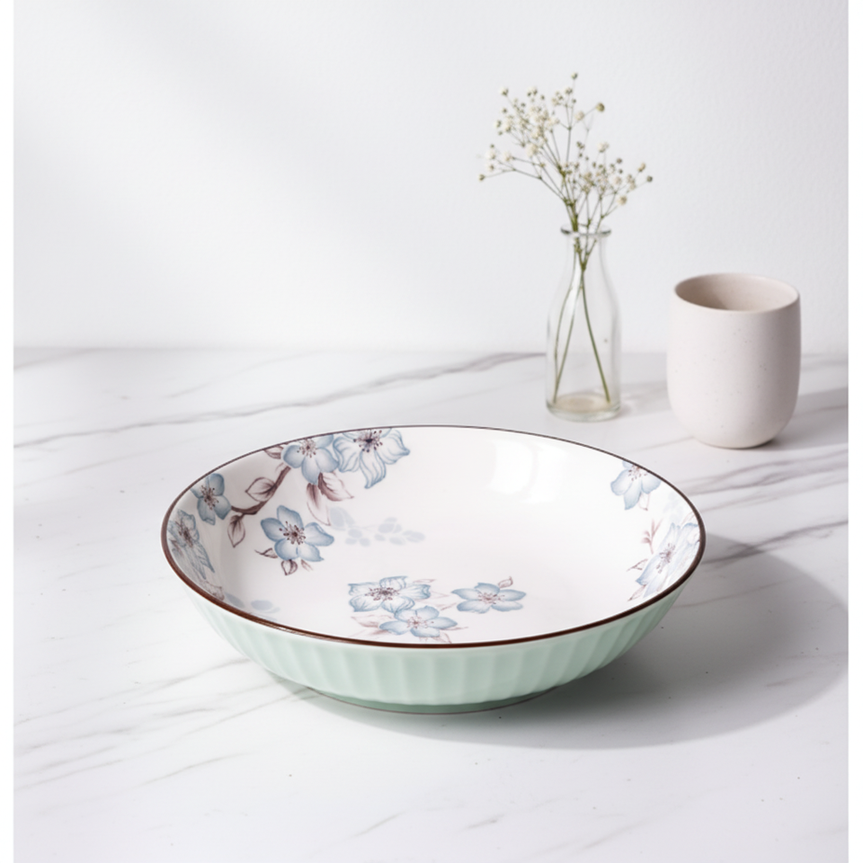 Juego de Vajilla de Cerámica China para Restaurante, Apto para Microondas, con Diseño de Plantas, Tazón para Arroz, Tazón para Vapor, Plato Combinado
