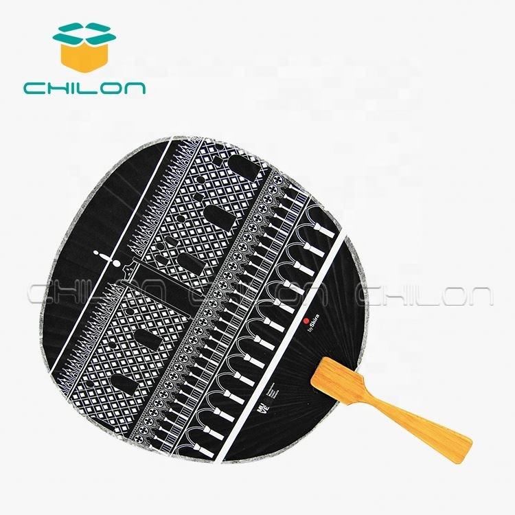 Ventilador de paleta circular chino Ventilador de mano de papel redondo con mango de madera