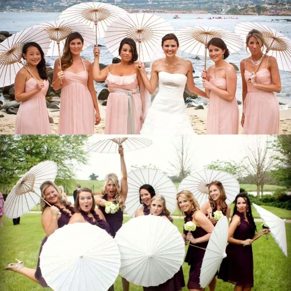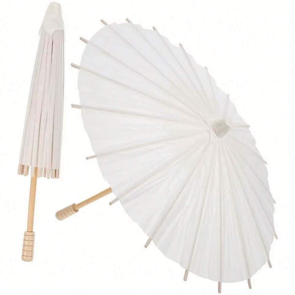 Sombrillas de Papel Rústicas Chinas para Fotografía, con Mango de Madera Tallada, para Baby Shower, Boda, Regalos Blancos